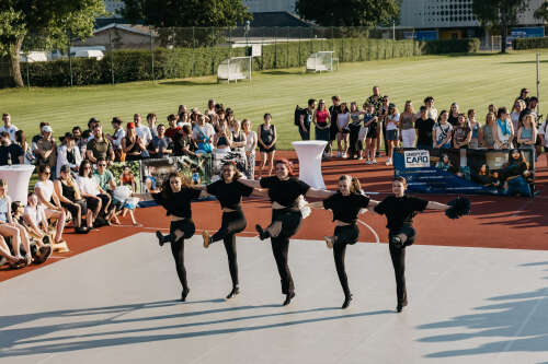 Dance elements such as turns, kicks, classic cheer jumps, and variations from ballet and jazz are combined into a creative choreography through group work, formation changes, ripples, and more.
