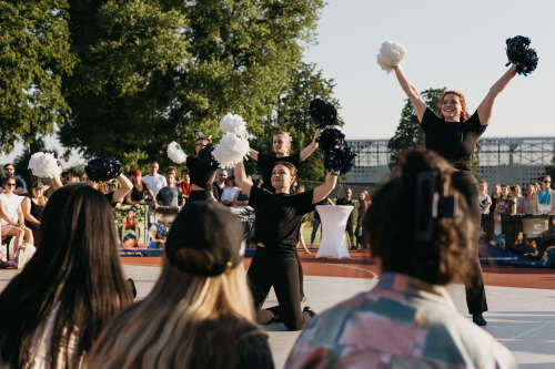 Cheer Performance is a category of cheerleading that focuses on dance-based routines performed using pom-poms. The characteristic style of a pom routine carries the traditional cheerleading spirit, but also incorporates elements from jazz and hip-hop dance. The emphasis lies on fast-paced, high-energy choreography, strong stage presence, synchronization, and team unity.