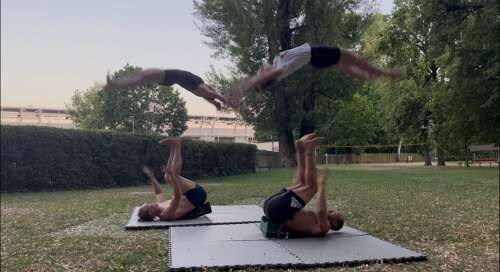 In the beginners’ course, you’ll learn the foundations of Acroyoga and practice your first poses, which can be connected through dynamic transitions (e.g. Flyer, Throne, Throne Turn, Whale, Waterfall, Drop, Cartwheel, Star, Shoulderstand, Trap Door).
